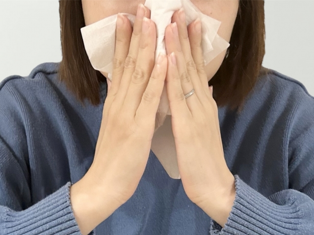 スギ、ヒノキ、イネ科、ブタクサなど、特定の季節に飛散する花粉が原因です。スギ花粉症は2月から4月、ヒノキは3月から5月がピークです。